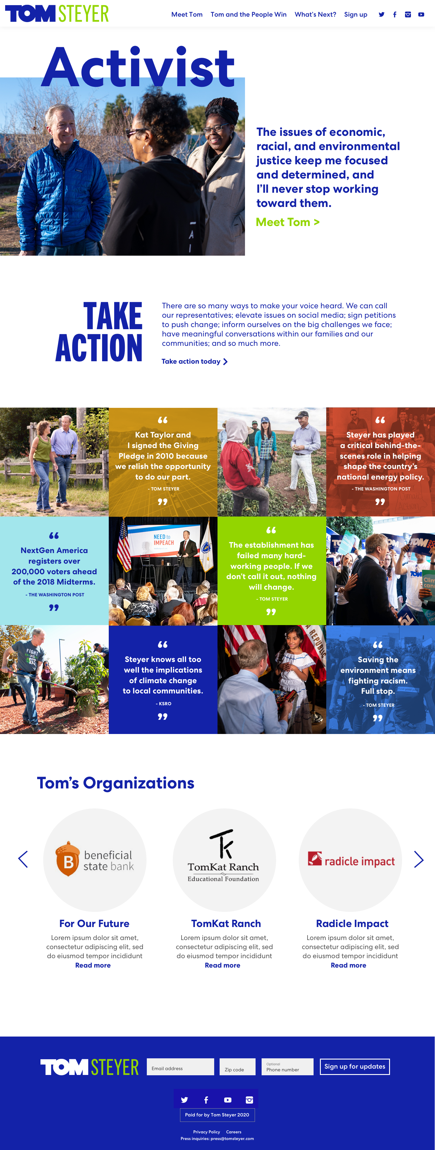 Website design for Tom Steyer, 2020